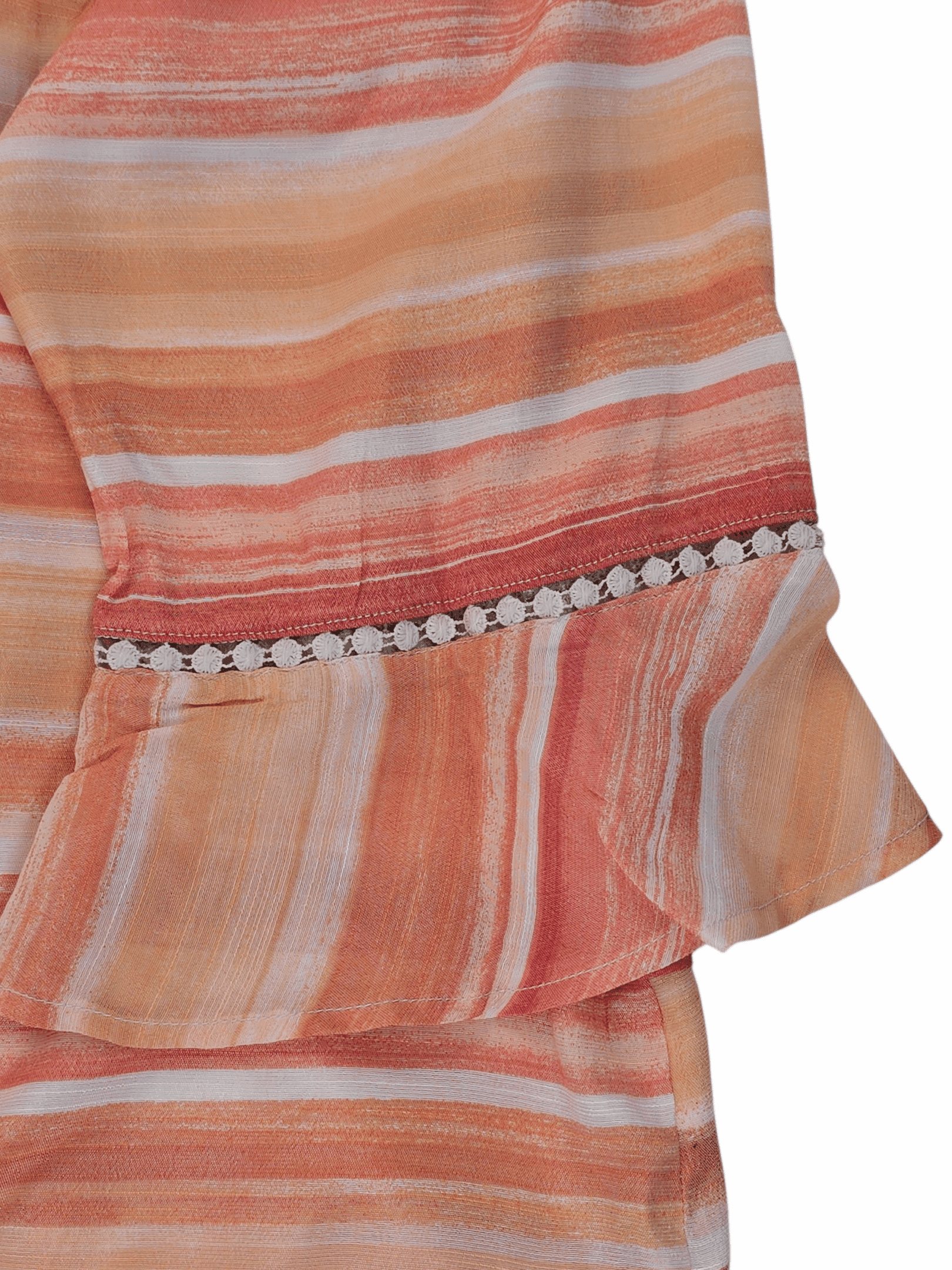 Alfred Dunner 3X embroidered ruffle blouse in warm orange with lace-trim sleeves and side slits. Lightweight and gently used.