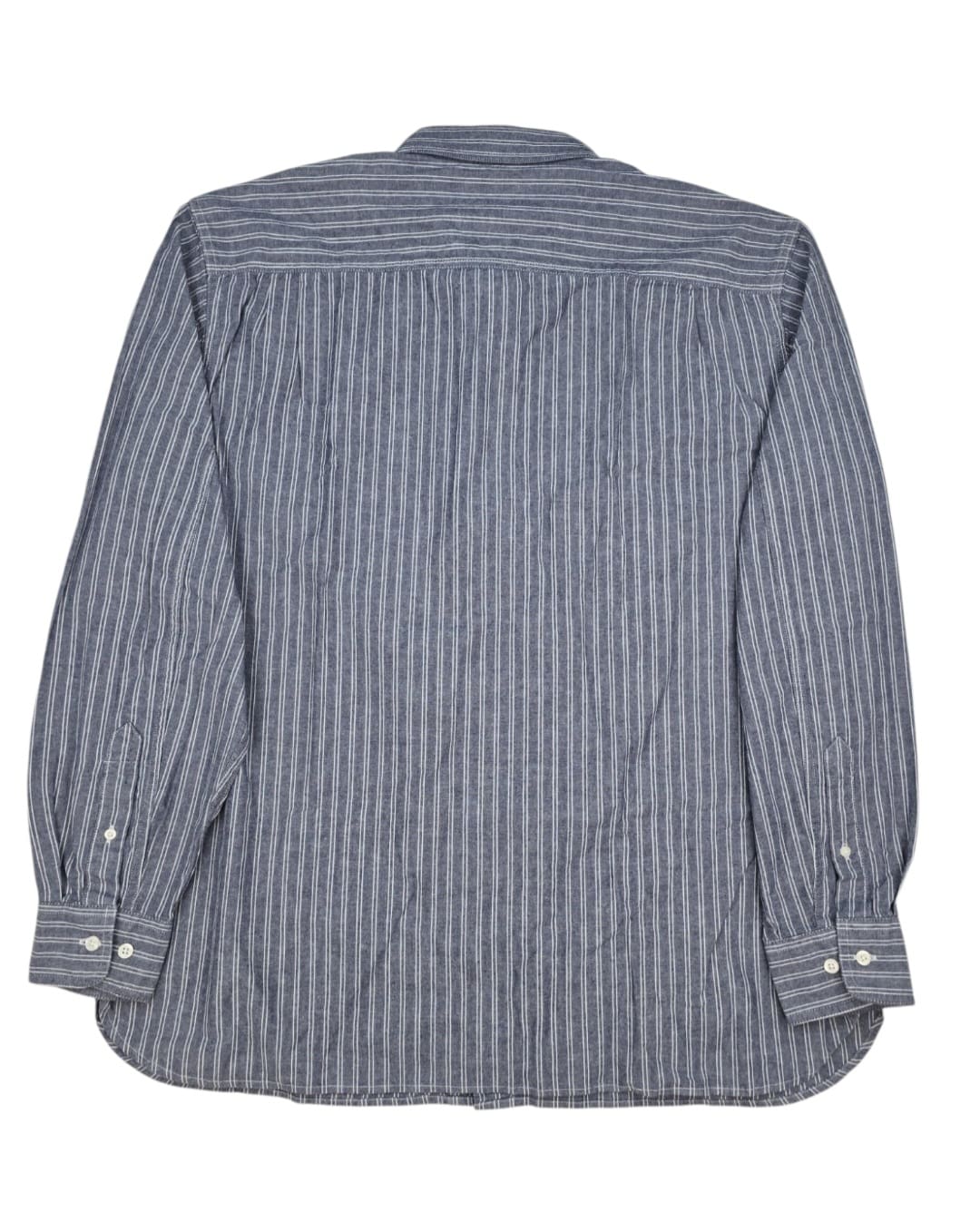 Additionally, the long sleeves and full button-up front create a timeless look for any occasion. Two chest pockets each close with a button for added utility. Split sides at the hem allow for comfortable movement and a more relaxed fit. This Blue Pinstriped Button-Up Shirt pairs easily with jeans or chinos for casual and office-casual wear alike.