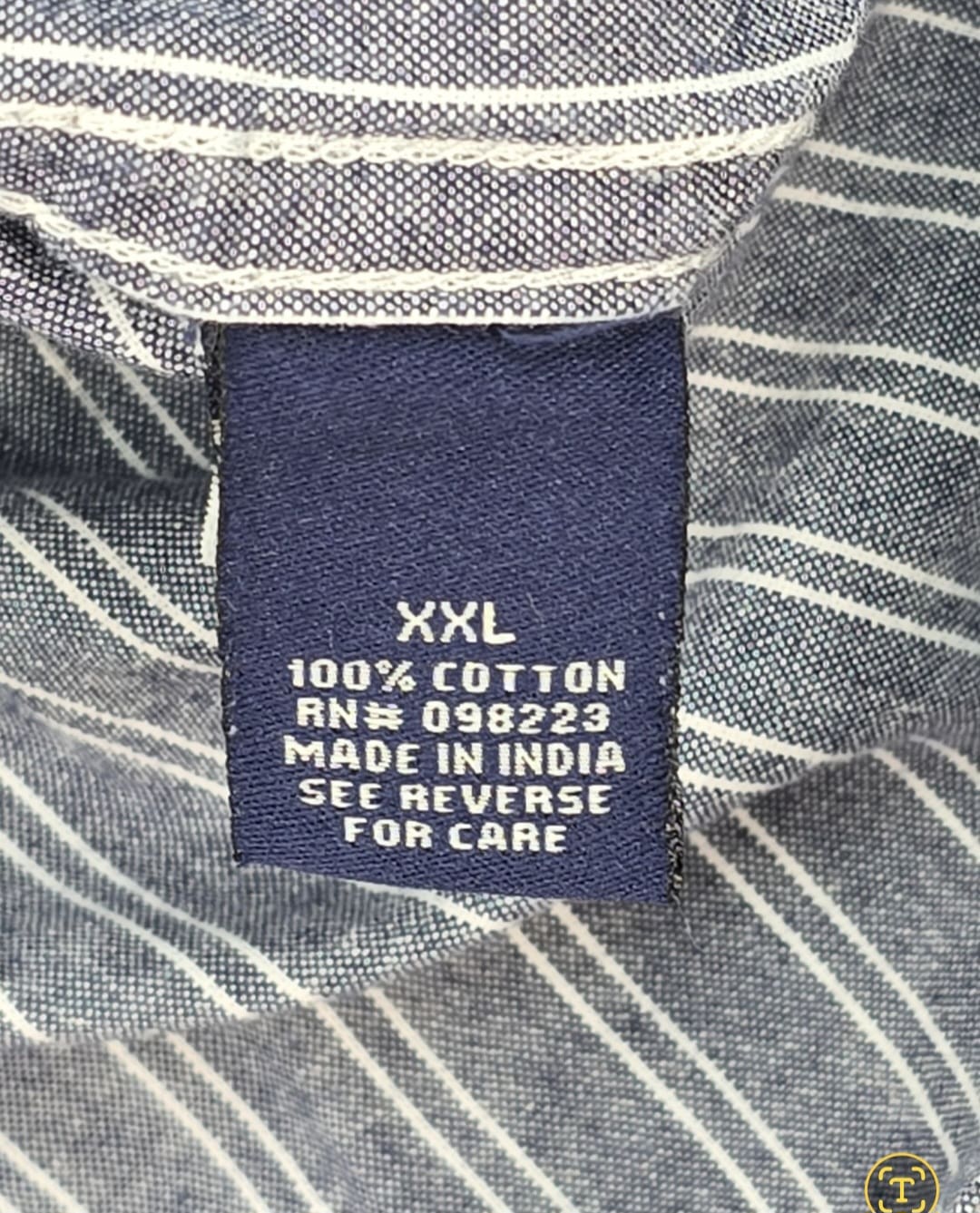This Austin Clothing Company Blue Pinstriped Button-Up Shirt in men’s size XXL Fitted offers classic style with a modern fit. It is made from 100% cotton for breathable comfort and easy care. The shirt features a denim-like blue tone with crisp white pinstripes that add a touch of polish.