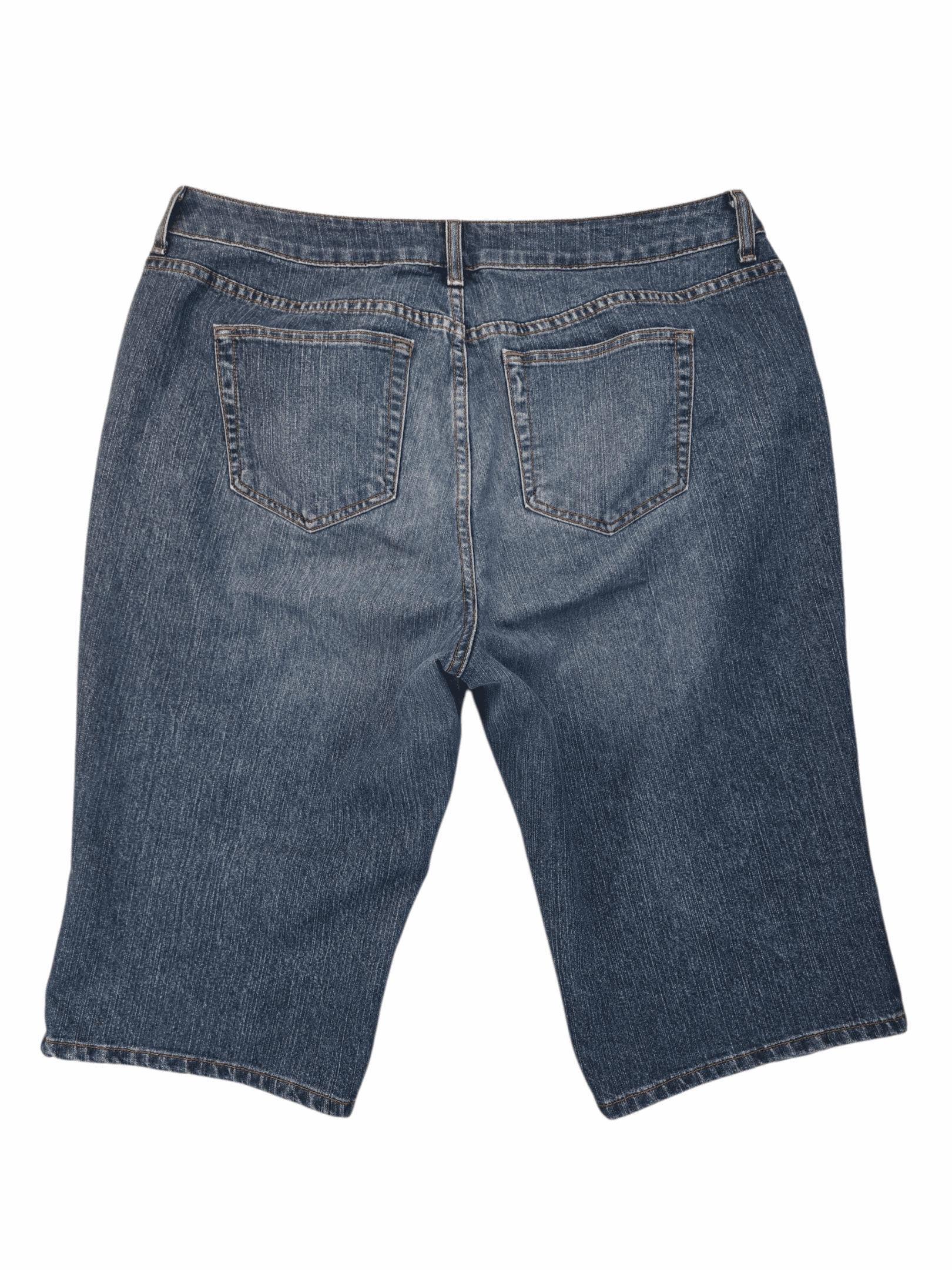 Classic blue plus size denim shorts with mid-rise fit and 17″ inseam. Comfortable everyday walking style, gently used, and always ships free. | Size 16W