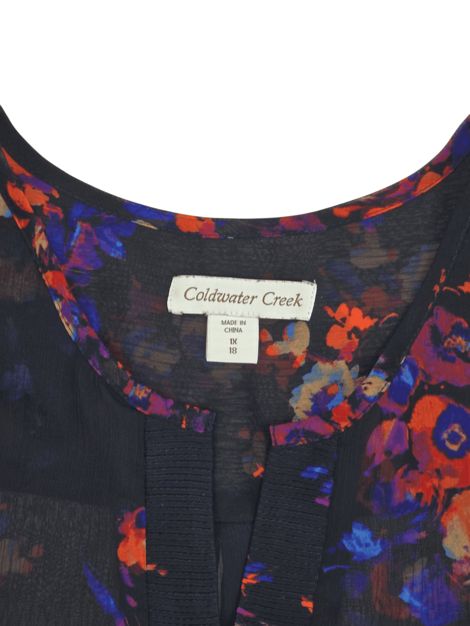 This Coldwater Creek women’s size 18 top blends vibrant color with elegant structure. Styled in black with clusters of orange and blue flowers, it adds a lively yet refined look. The v-neckline includes a ribbed inset that extends several inches down the front, adding texture and visual interest. The 3/4 sleeves feature button cuffs for easy wear, while chest darts provide a flattering fit that enhances your shape.