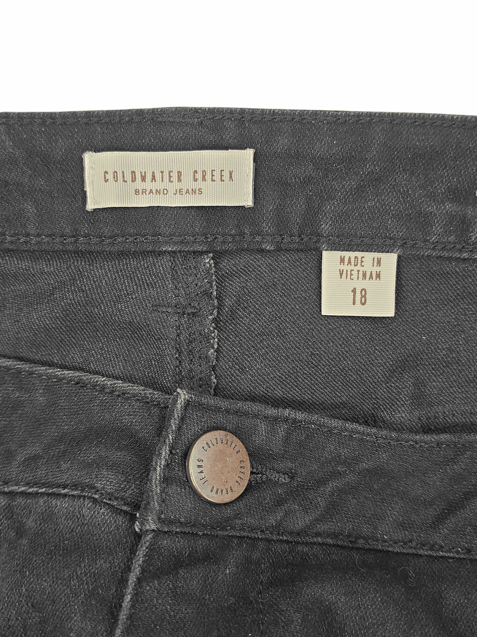 These Coldwater Creek women’s jeans feature a sleek black wash and built-in tummy control for shaping and comfort. Classic straight-leg cut, soft stretch blend, and machine washable fabric. Gently used and always ships free from Curve Love Revival.
