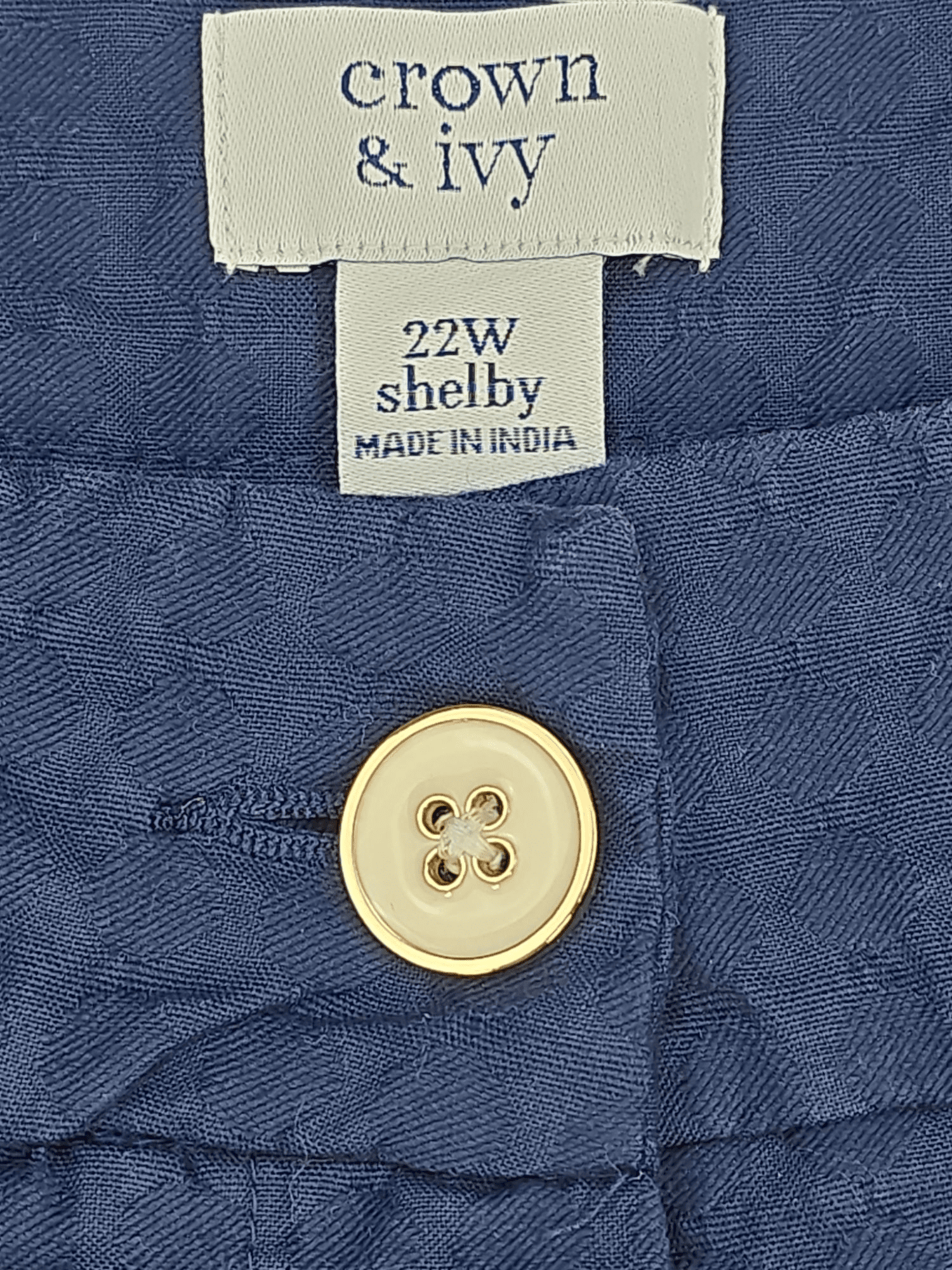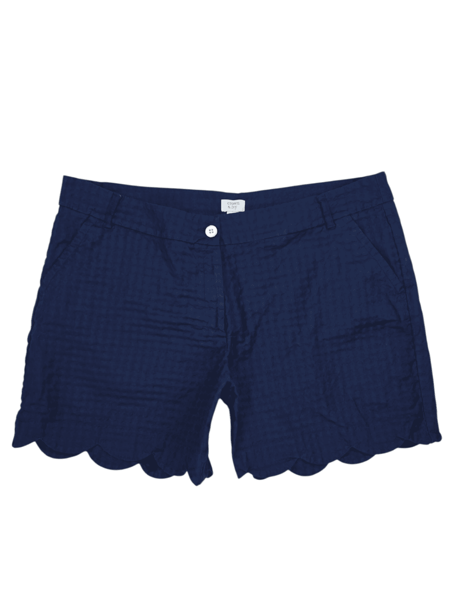 Crown & Ivy women’s 22W Shelby shorts in navy with scalloped hem and soft stretch cotton-spandex blend. Gently used condition. Always ships free from Curve Love Revival.