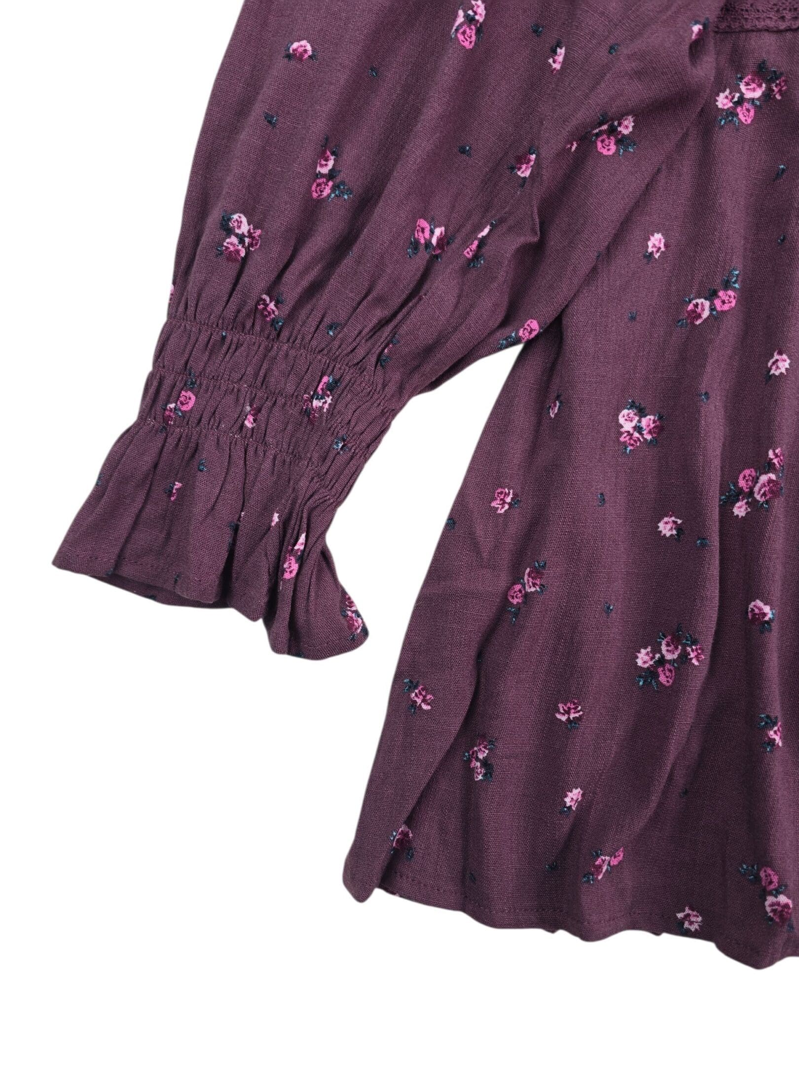 The square neck shape adds a soft frame to the neckline. Moreover, the lace trim and front tie bring gentle detail without feeling tight. The long sleeves with smocked cuffs add shape and soft movement. This top is new and ready to wear.