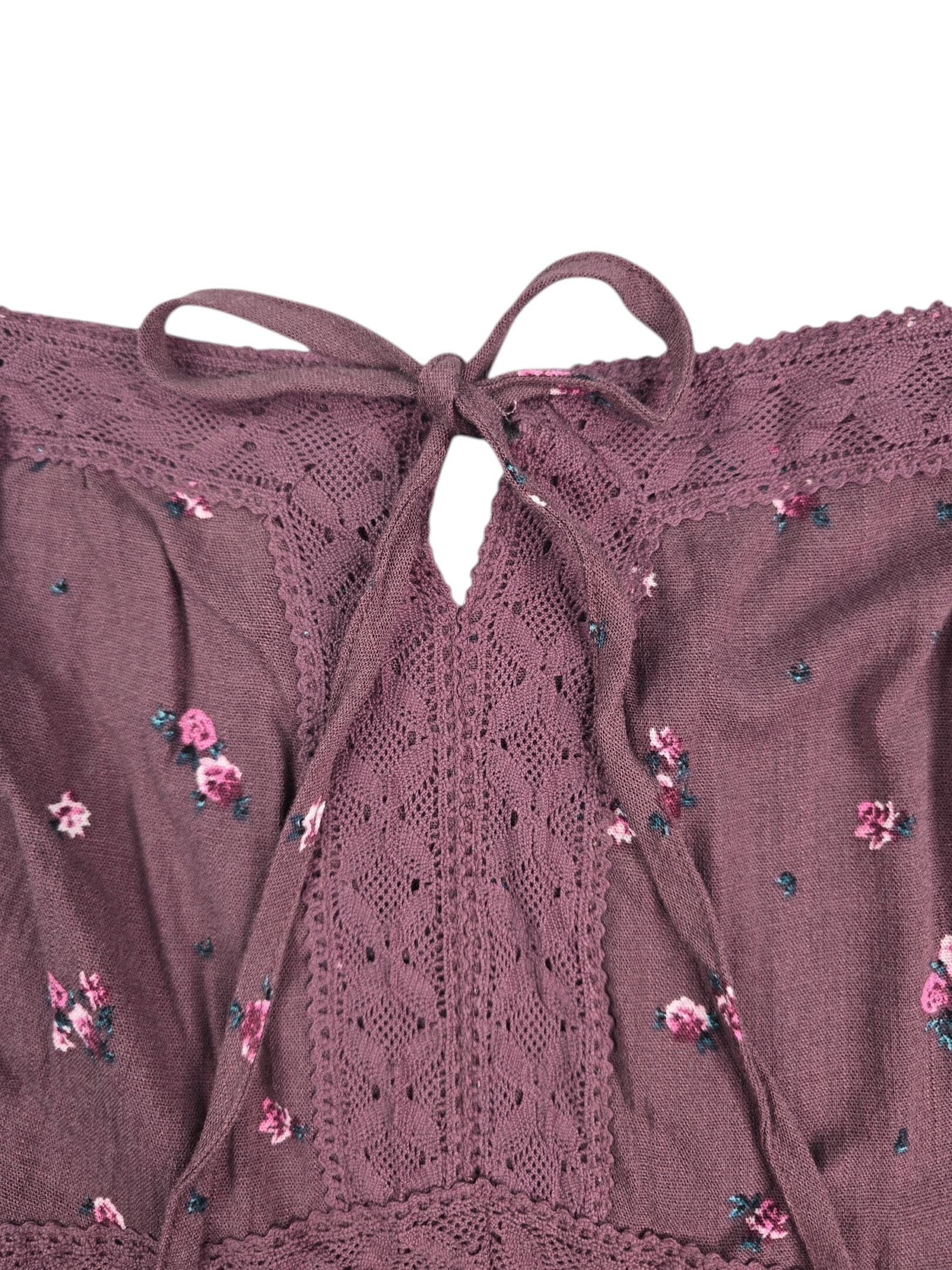 Soft Torrid floral peasant style top with lace trim, tie front, and long sleeves in a flowing boho floral top style. Torrid size 2. New and ready to wear. Always ships free from Curve Love Revival.
