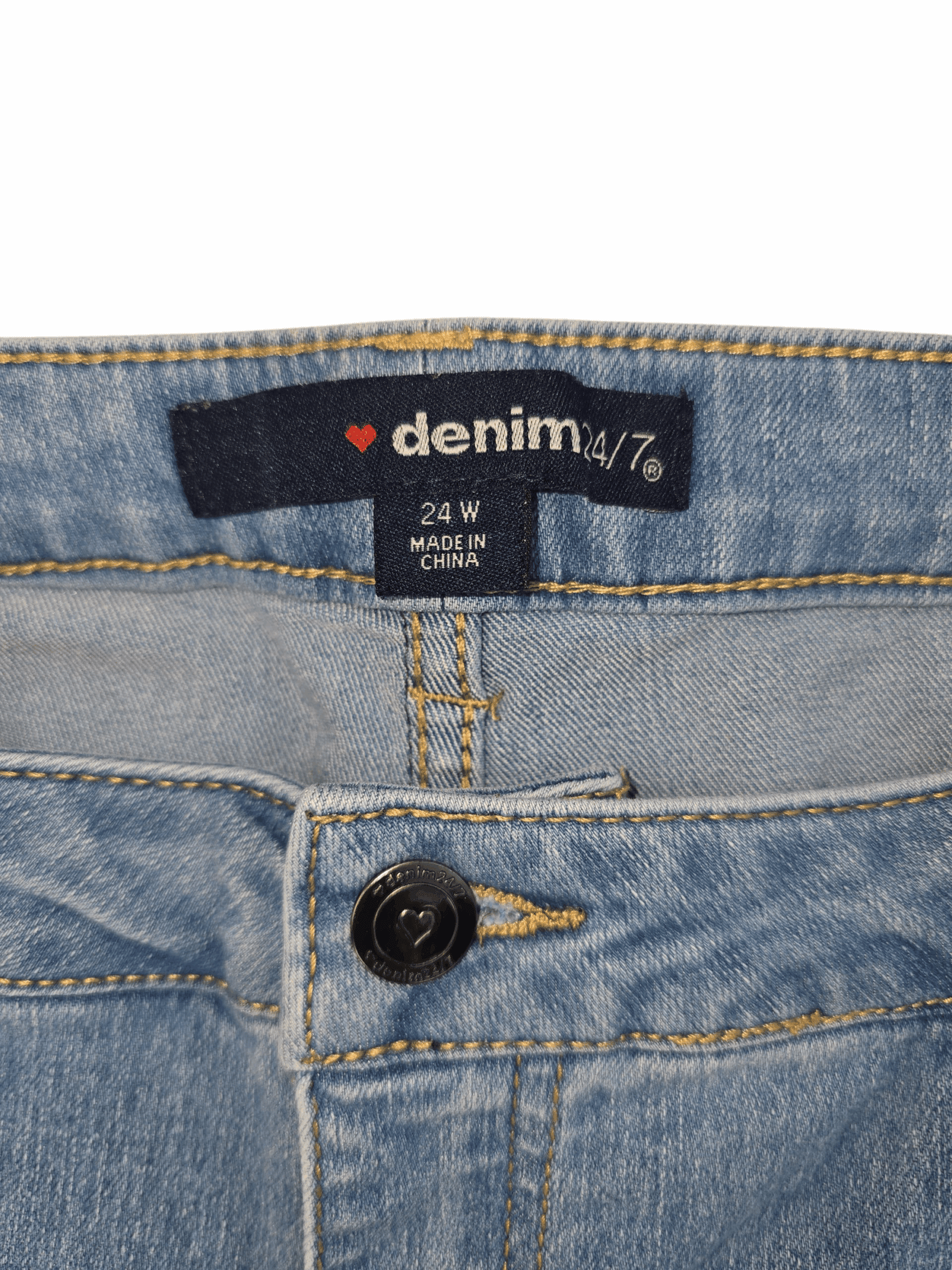 Denim 24/7 (Catherines / FullBeauty Brands) women’s 24W light blue jean shorts with folded cuff.