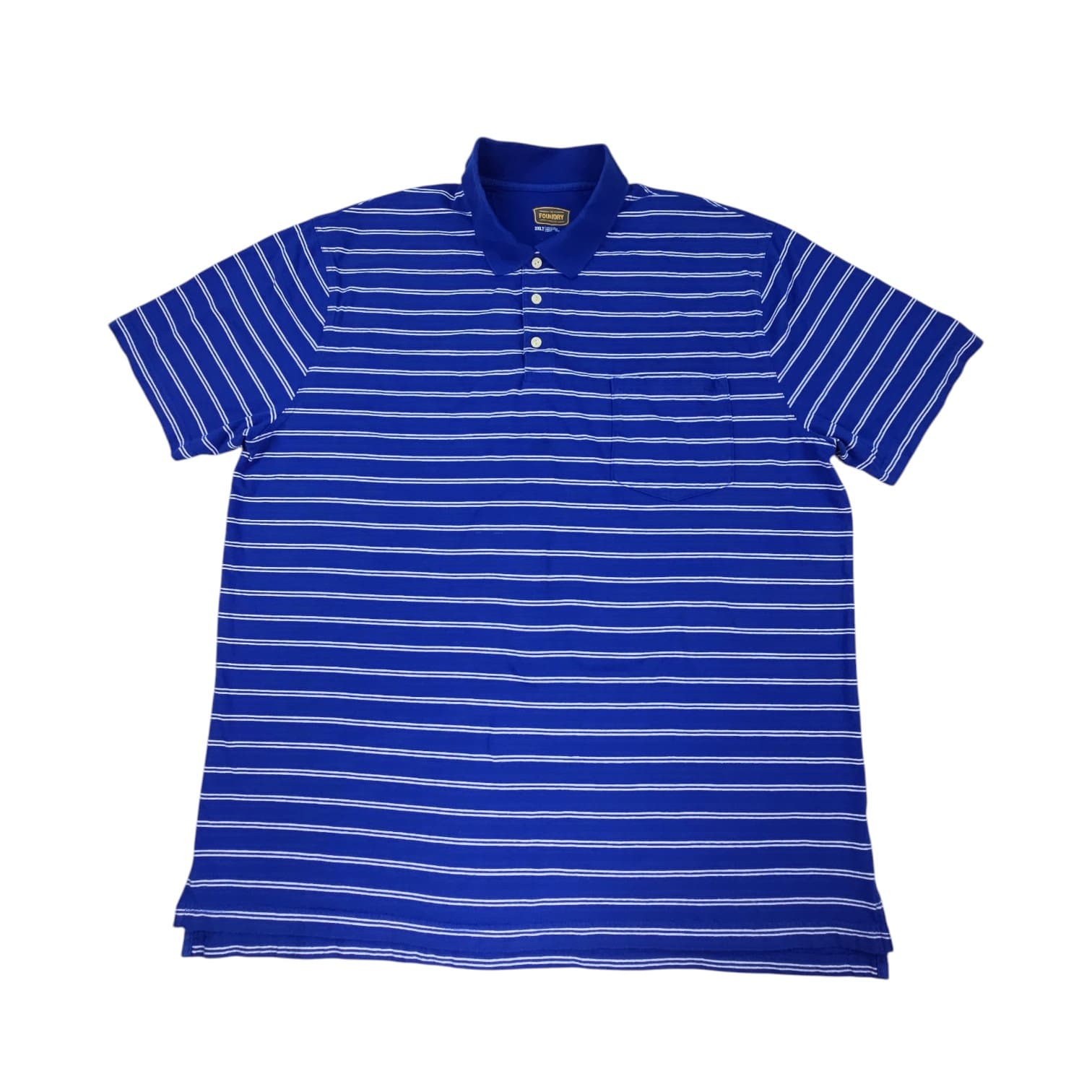 The Foundry men’s polo shirt in size 2XLT offers breathable comfort with a classic striped design. This men’s big and tall polo shirt fits well for everyday wear. Comes in 100% cotton and is in good used condition without any known defects. Always ships fast and free from Curve Love Revival.