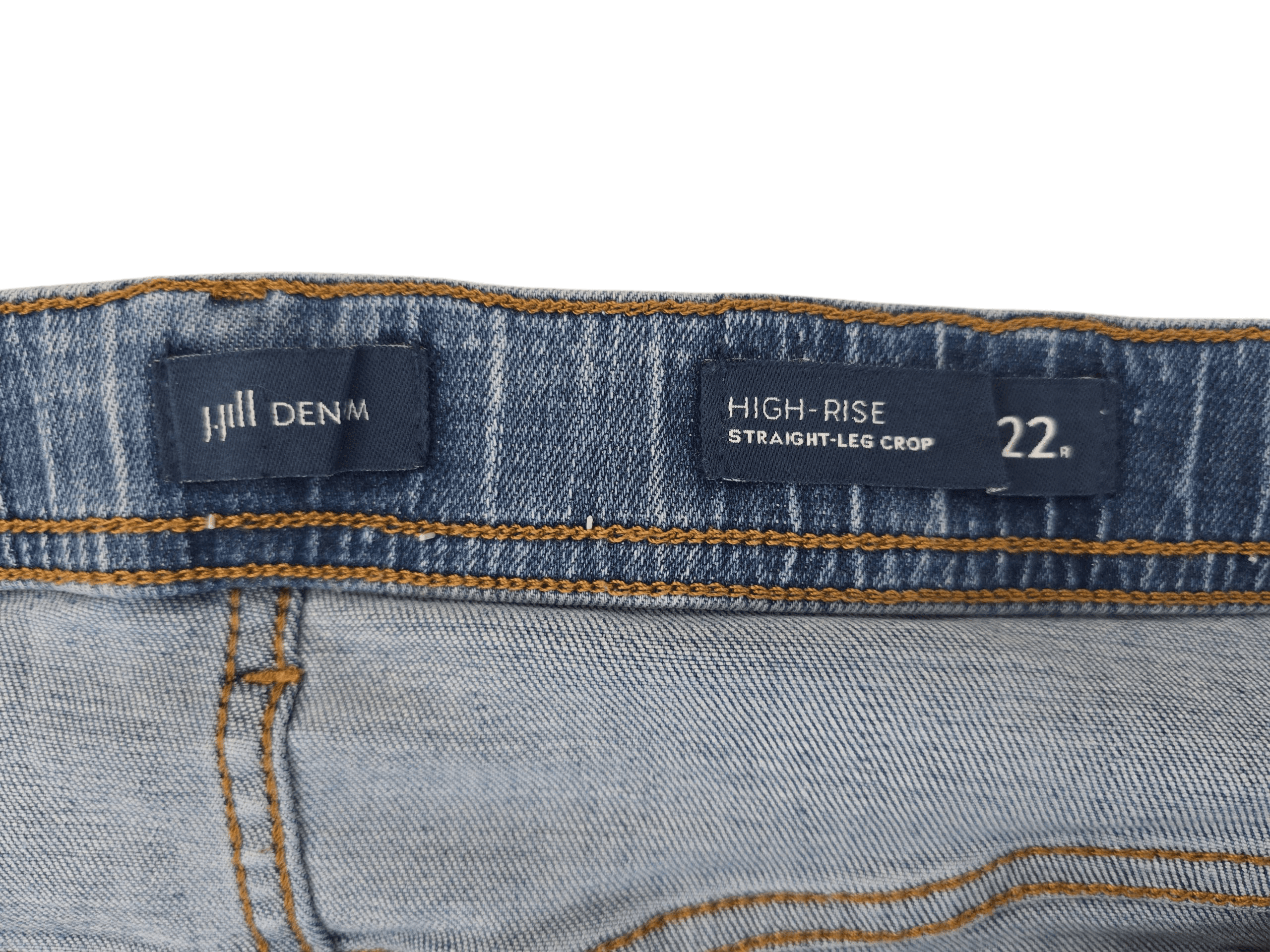 J. Jill high-rise straight-leg cropped jeans in size 22R with raw hem, classic five pockets, and soft blue denim for everyday wear.
