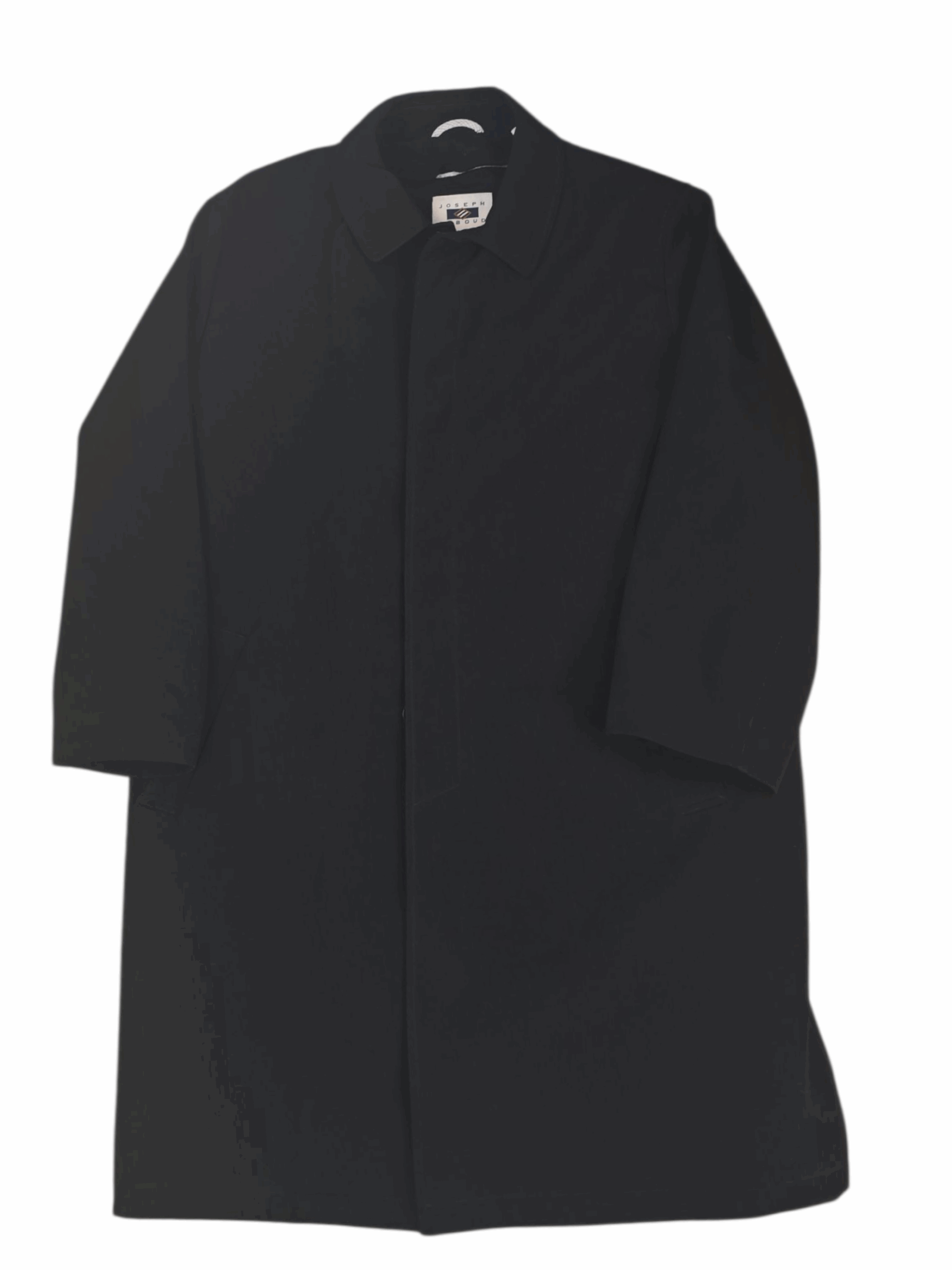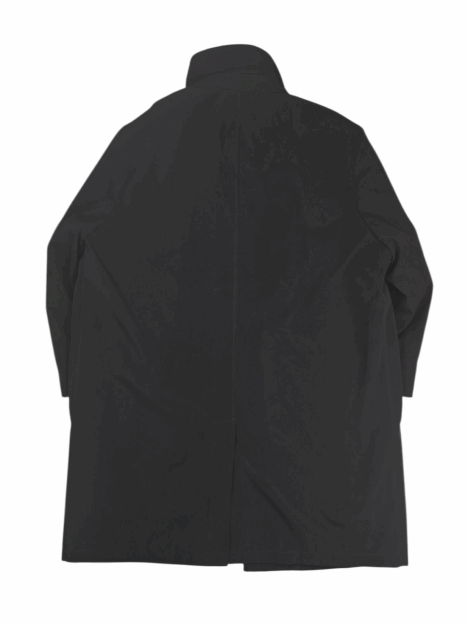 This men’s Size 48 black coat has a clean four-button front that gives it a structured and refined look. Two exterior pockets and two interior pockets—one at the chest and one lower—provide convenient storage. A long back slit ensures easy movement while maintaining a tailored silhouette. The durable polyester fabric holds its shape well, and the deep black color remains rich even after repeated wear.