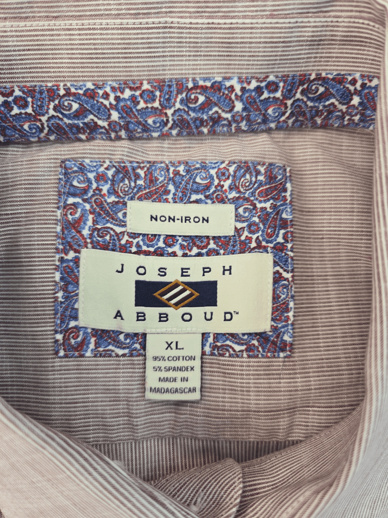 Joseph Abboud XL plum striped shirt with paisley trim and stretch cotton. Wrinkle-resistant and easy to wear — ships free.