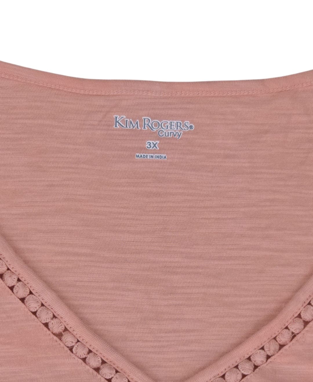 Kim Rogers Curvy coral lace-trim tee, size 3X (NWT). 100% cotton, v-neck, soft feel, everyday comfort.