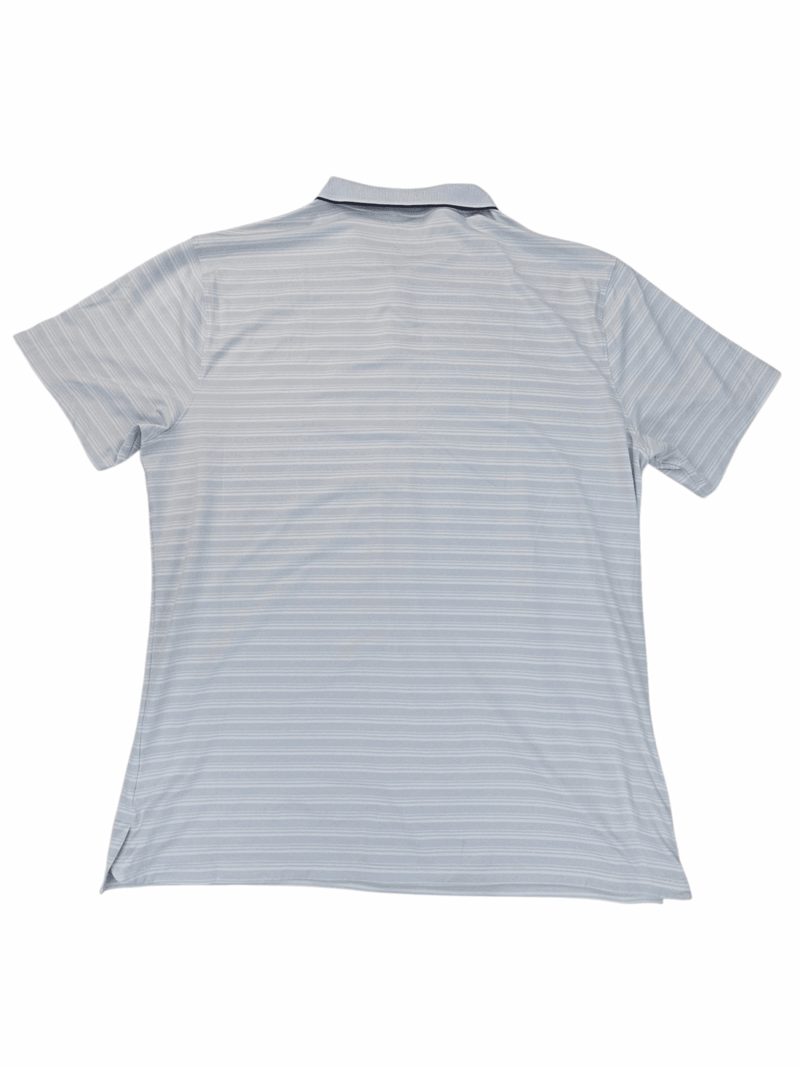 This Nike Dri-Fit Technology Polo keeps you cool, dry, and comfortable during active days. This performance golf polo shirt uses moisture-wicking Dri-Fit fibers. It pulls sweat away from your skin, helping you stay fresh on the course or on the go. The lightweight fabric feels smooth, and the light-gray and white stripe pattern adds clean athletic style. Also, this Nike moisture-wicking polo pairs easily with golf shorts, chinos, or activewear for everyday versatility. It is in gently used condition and well-maintained.