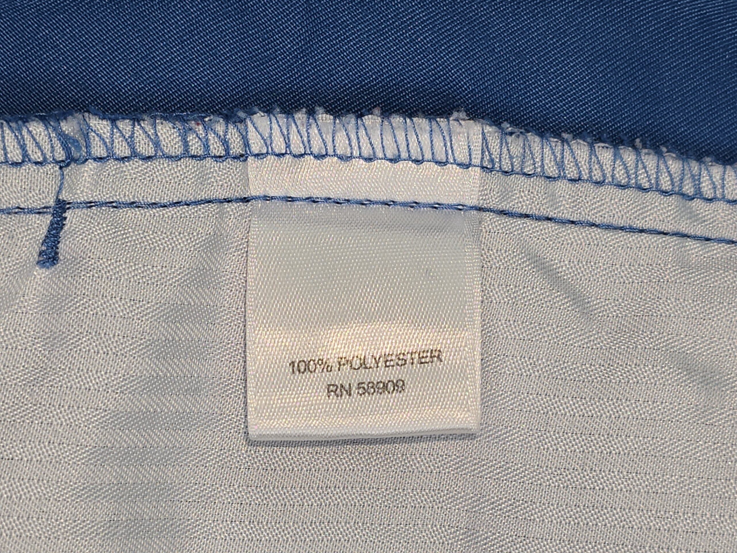 These blue men’s casual shorts feature a clean zip-and-button closure and a structured waistband with belt loops. The polyester fabric helps maintain shape while remaining easy to care for. This resale item remains in good used condition and is ready for everyday wear, travel, or casual outings.