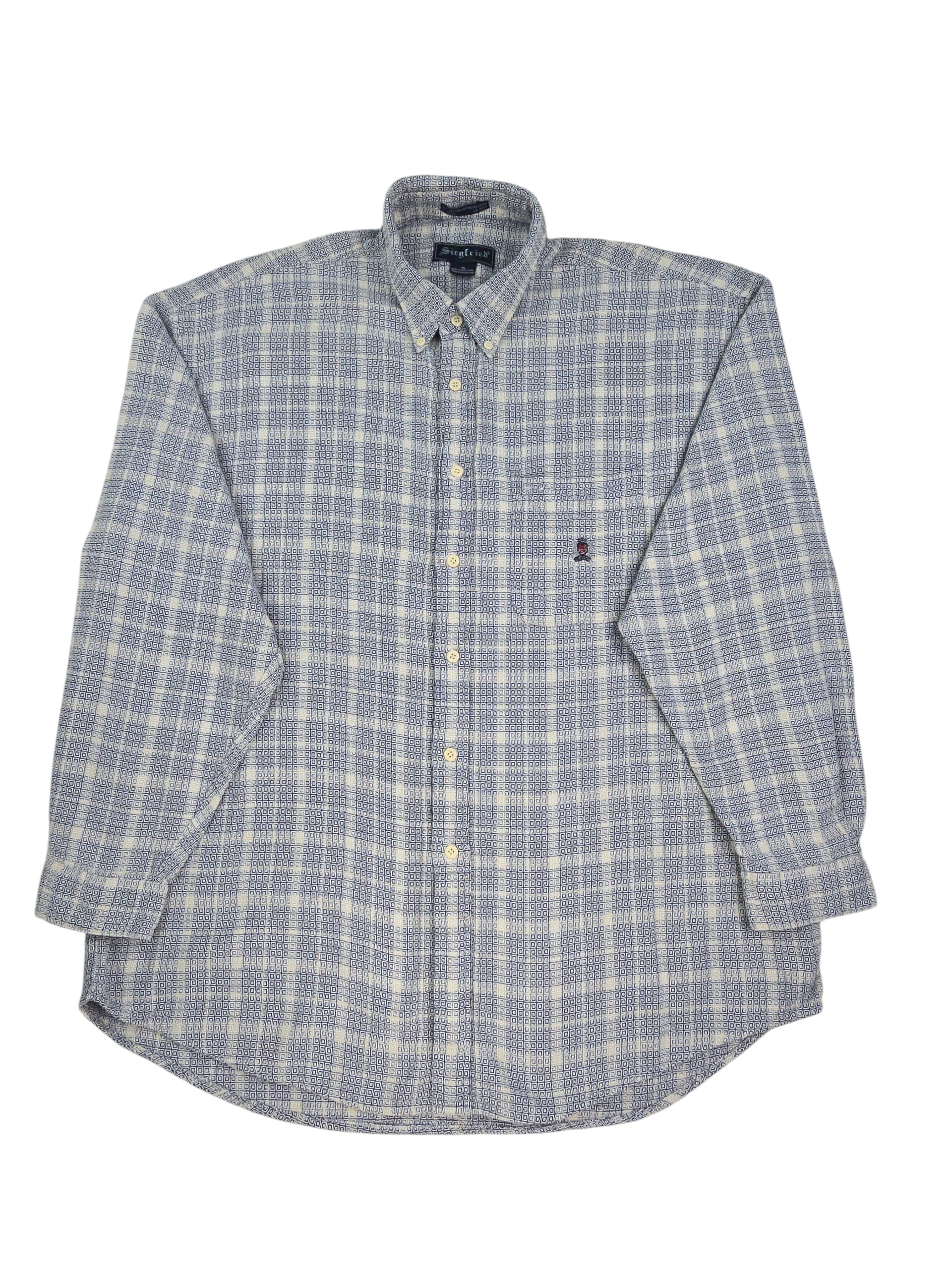 Siegfried long sleeve button up shirt with a blue geometric pattern in men’s size XL offers breathable comfort with a classic woven design. This men’s 100% cotton shirt is in good used condition and is easy to style. Always ships fast and free from Curve Love Revival.