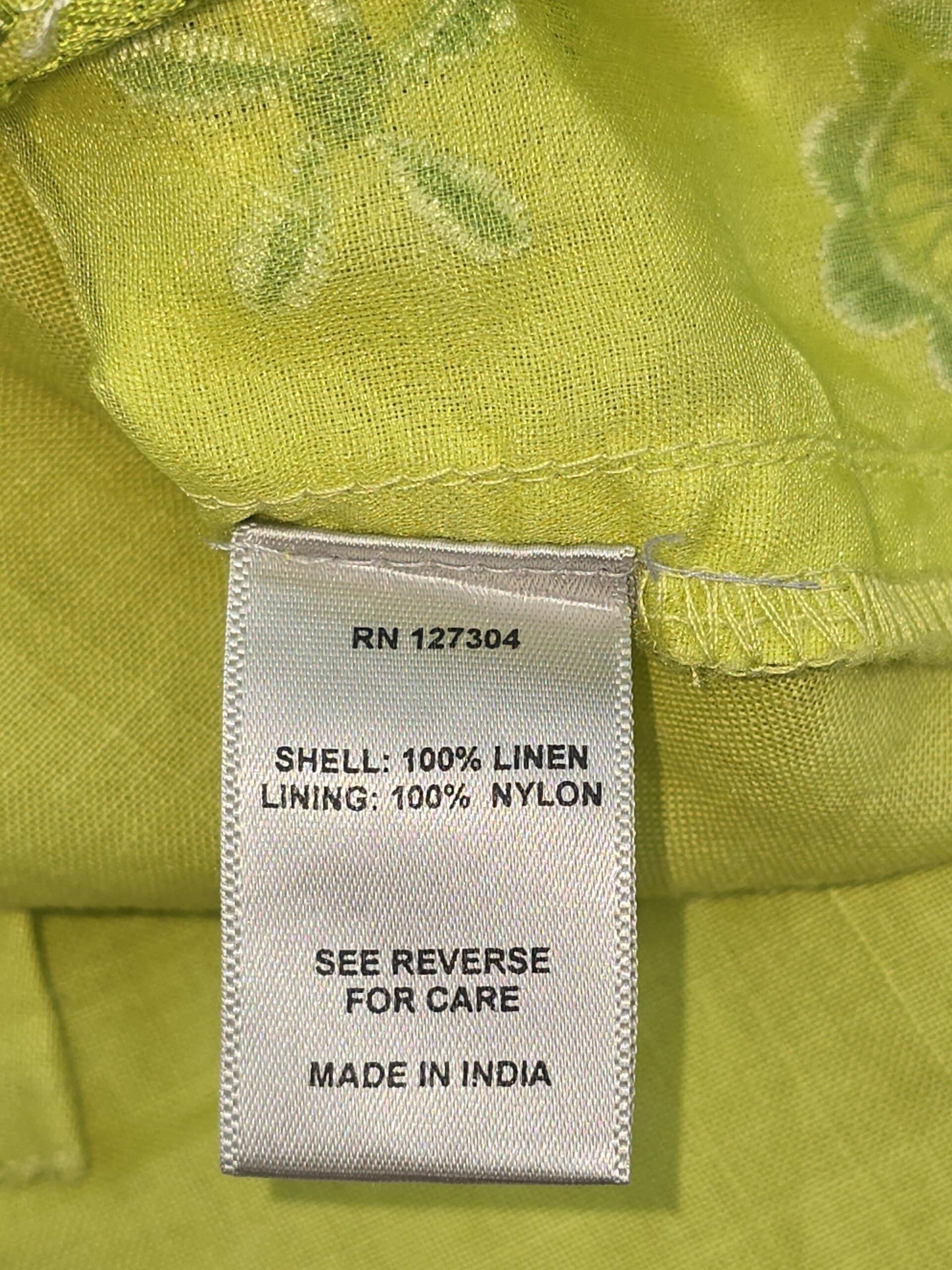 Because of the airy linen construction, this size 2X linen blouse feels lightweight while still offering structure. The embroidered linen blouse pairs easily with jeans, capris, or linen pants. Gently used condition keeps this resale blouse ready for many more seasons of wear.
