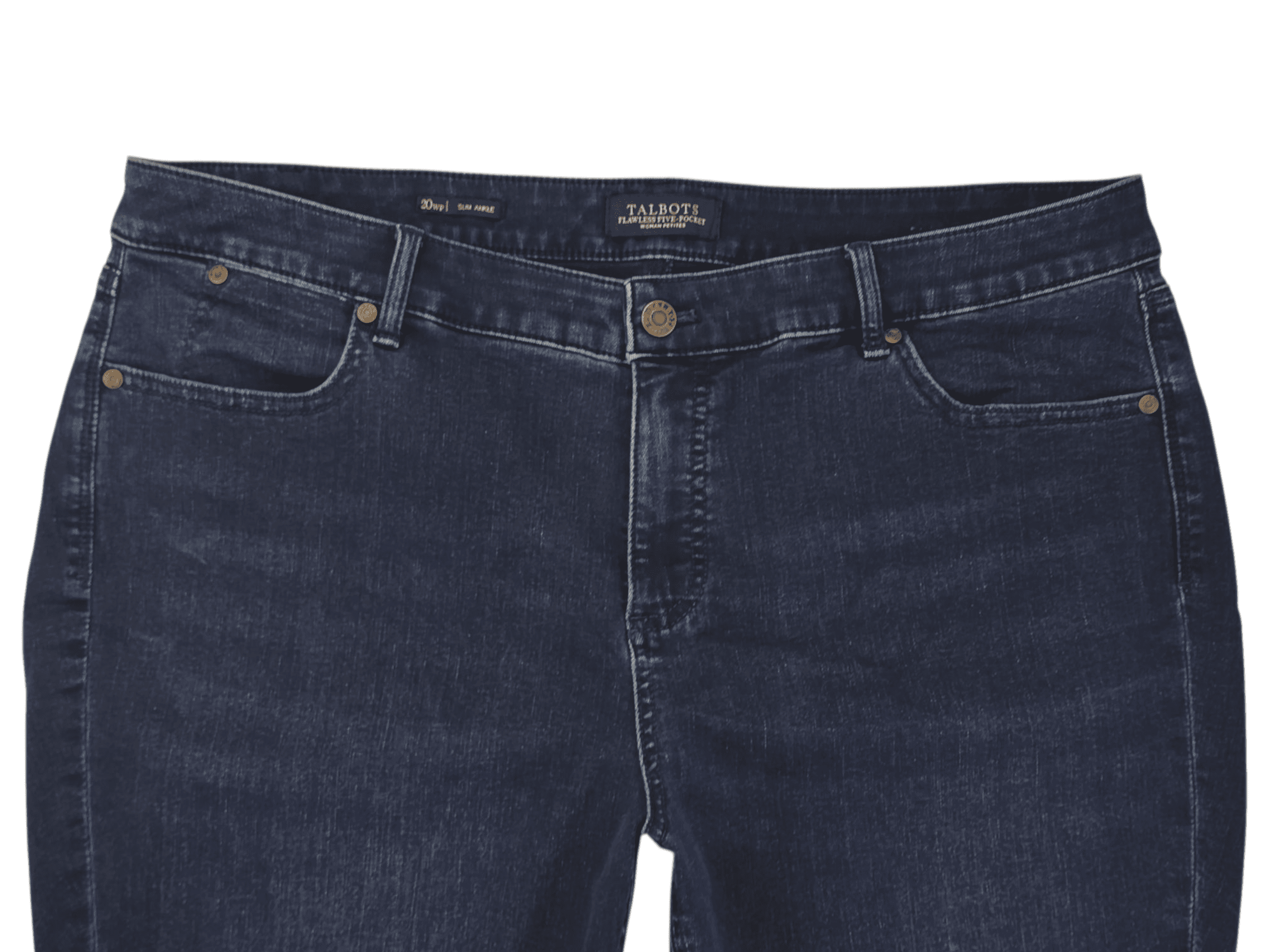 These Talbots Flawless slim ankle jeans deliver a sleek, smoothing fit with gentle stretch and everyday comfort. Designed with built-in tummy control, a zip-and-button closure, and a classic five-pocket layout, they balance function with timeless style. The flattering slim ankle cut pairs easily with blouses, sweaters, or tees, making them an easy favorite for any day.