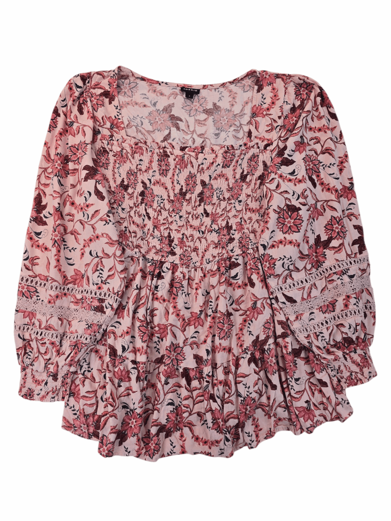 Torrid Smocked Floral Top Long Sleeve Feminine Style | Size 3