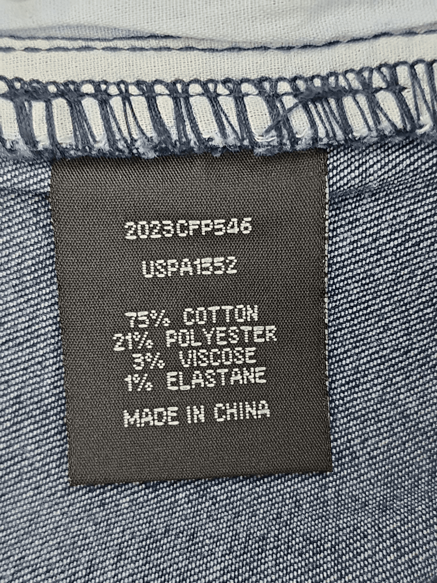 Made from a soft blend of cotton, polyester, viscose, and elastane, they stretch comfortably without losing shape. The five-pocket styling offers practicality, while the ankle-length inseam keeps the look versatile. These jeans are machine washable and in good used condition.