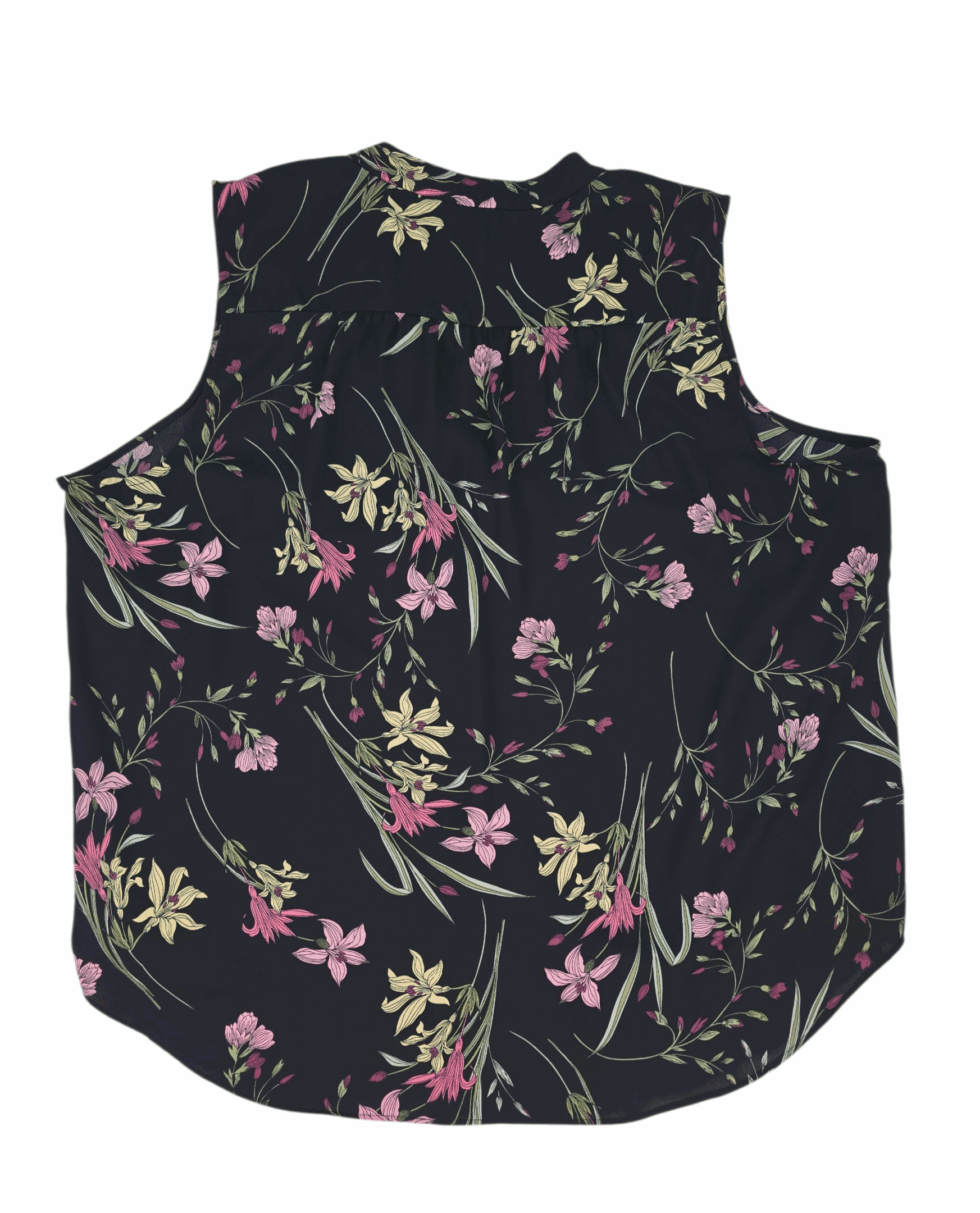 Vince Camuto sleeveless floral v-neck top in size XXL with soft drape and longer back hem. Lightweight and gently used.