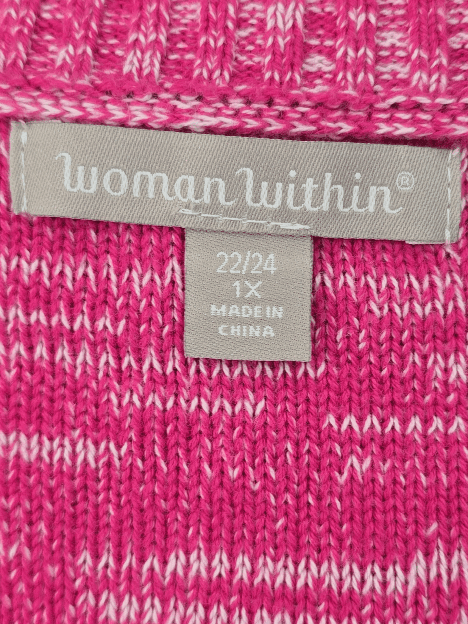 Woman Within 22/24 pink cotton sweater with breathable knit, ribbed trim, and button-front design. Soft and versatile for casual layering — ships free.